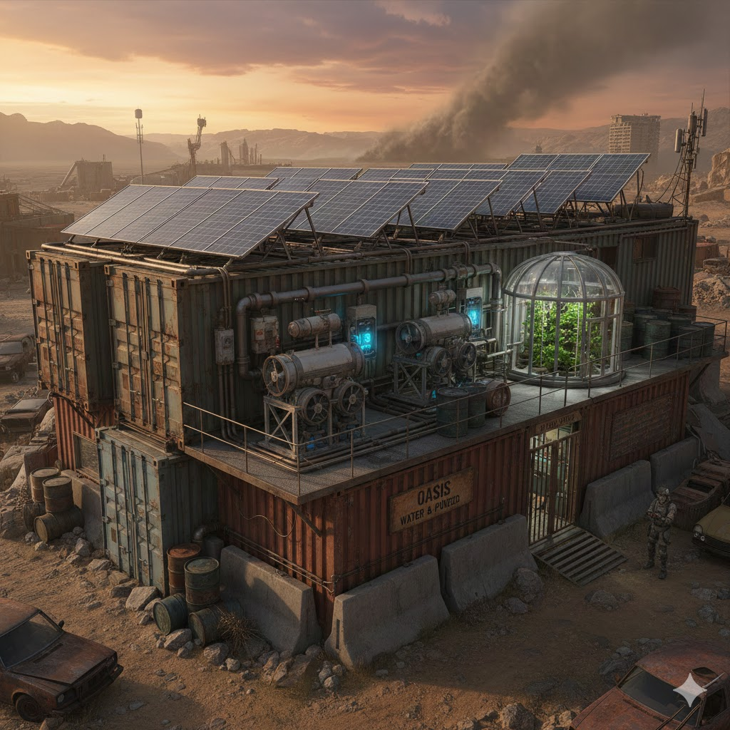 Dalam persekitaran pasca-apokaliptik, sumber air tradisional menjadi terhad disebabkan oleh pencemaran, kerosakan atau persaingan. Fungsi utama penjana udara-ke-air adalah untuk mengekstrak kelembapan dari udara, membolehkan kecukupan air dalam persekitaran yang kekurangan sumber. Walau bagaimanapun, Penyelesaian Air Minum biasanya memerlukan elektrik, yang selalunya sukar dijamin dalam konteks keruntuhan ekonomi pasca-apokaliptik.